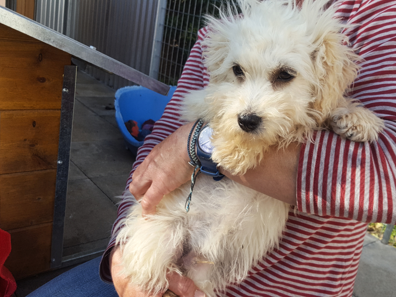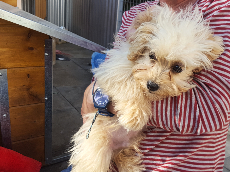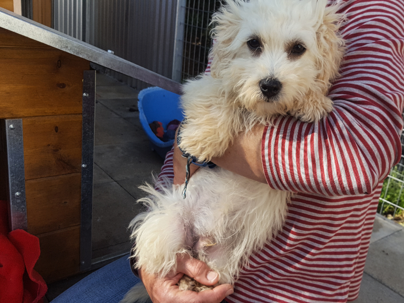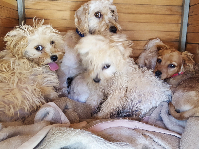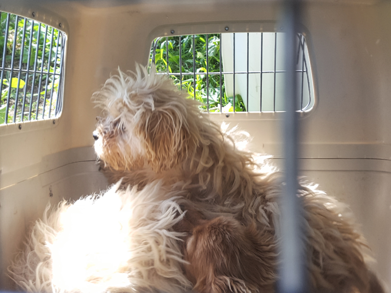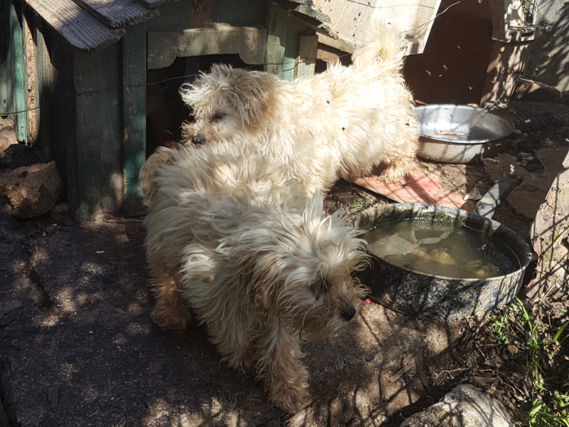 Alle fünf Hunde waren in einem sehr verwahrlosten Zustand und die Erstversorgung mit Entwurmung, Flohmittel, Behandlung des starken Zeckenbefalls, die Schur und das Baden der Tiere war dringend nötig.