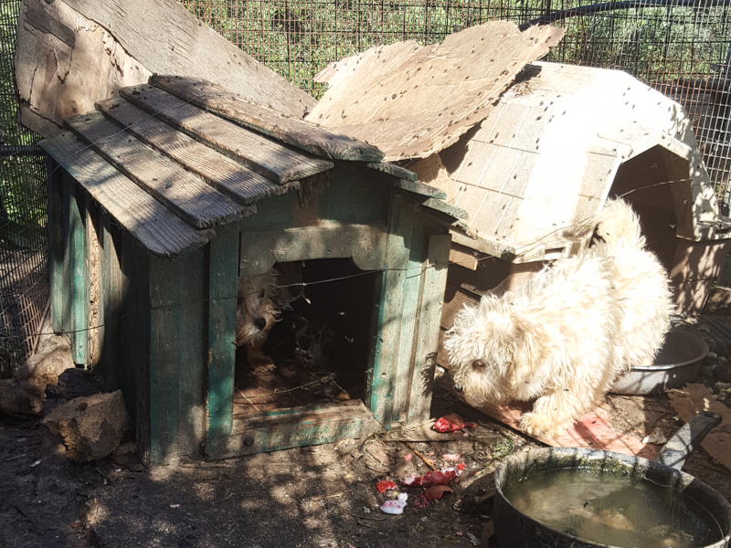 Leider muss das Elternpaar wieder zurück. Sie sollen nicht vermittelt werden. Unsere Bedingung für die Rückgabe war jedoch, dass ein neuer Zwinger gebaut wird und ab jetzt werden wir dort regelmässig zur Kontrolle vorbeischauen.