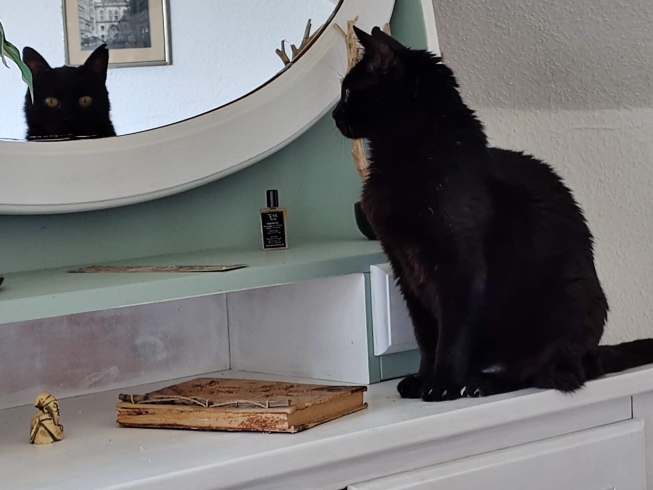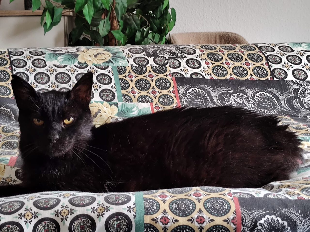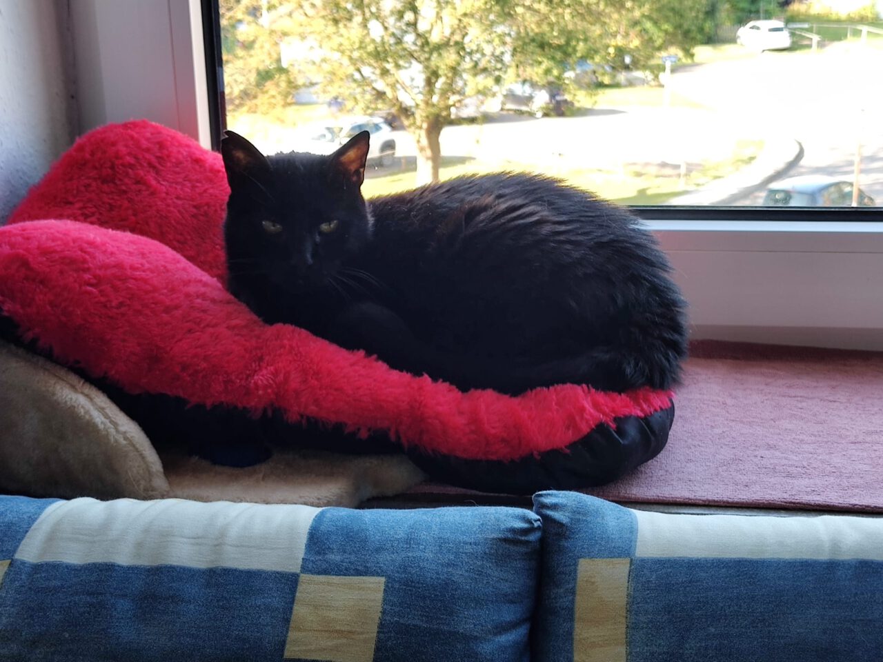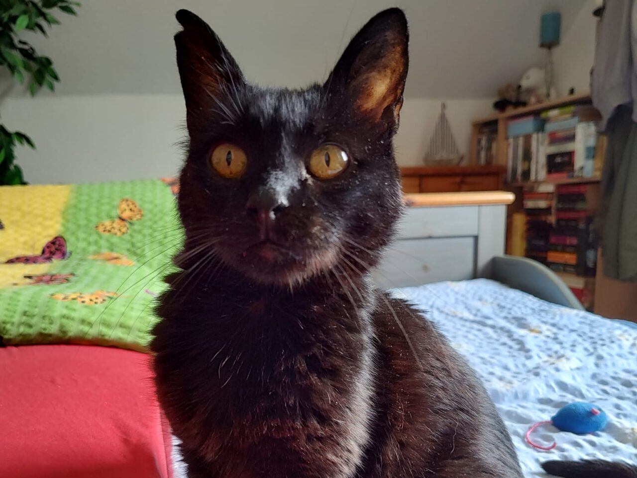 Die schwarze Lady ist sehr lieb, anhänglich, kuschelt gern und wünscht sich menschliche Ansprache und Aufmerksamkeit. Dies erhält sie uneingeschränkt auf ihrer liebevollen Dauer-Pflegestelle. Joya ist einfach am glücklichsten, wenn sie direkt bei ihrem Pflegefrauchen sein kann – ob auf dem Schoß oder mit auf der Couch und im Bett liegend – immer mit engem Körperkontakt. Joya liebt die häusliche Gemütlichkeit und ist nicht besonders unternehmungslustig. Schließlich hat sie Jahre im Freien ohne ein richtiges Zuhause gelebt.